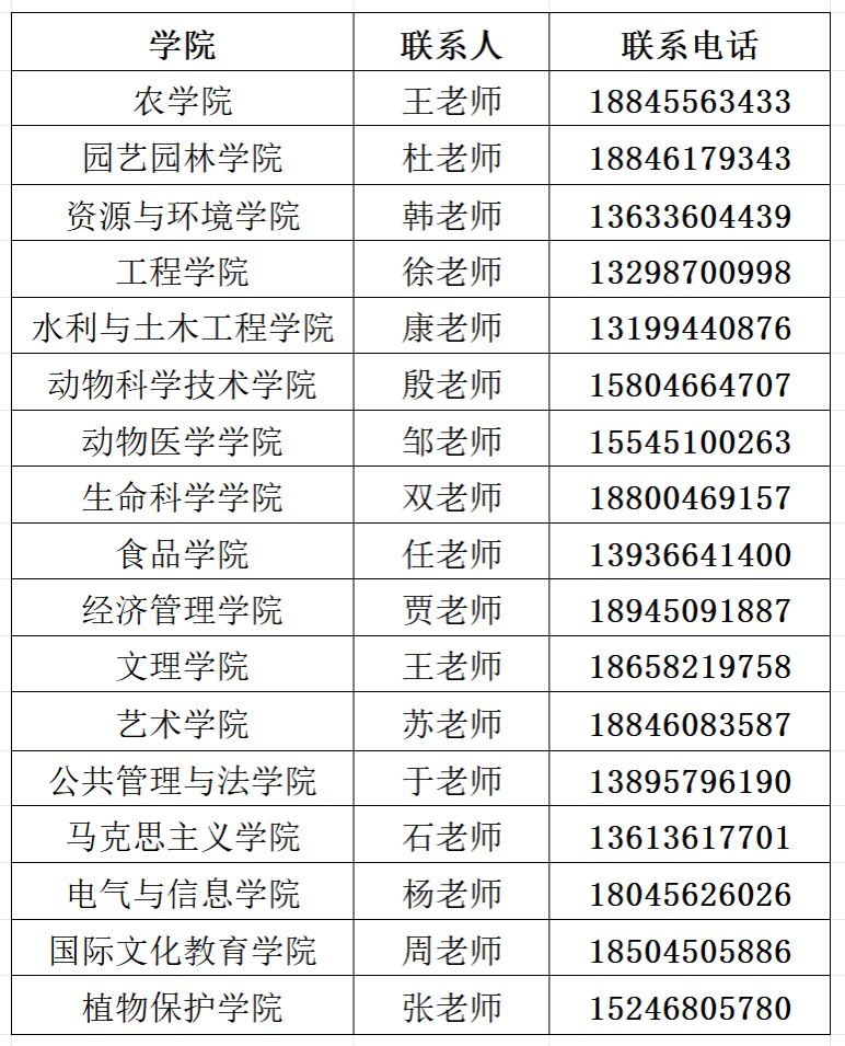 注:返校校友集体如想回学院开展座谈交流、文体活动、洽谈合作等,可提前一周与下方各学院承接校友返校联络人具体联系沟通。