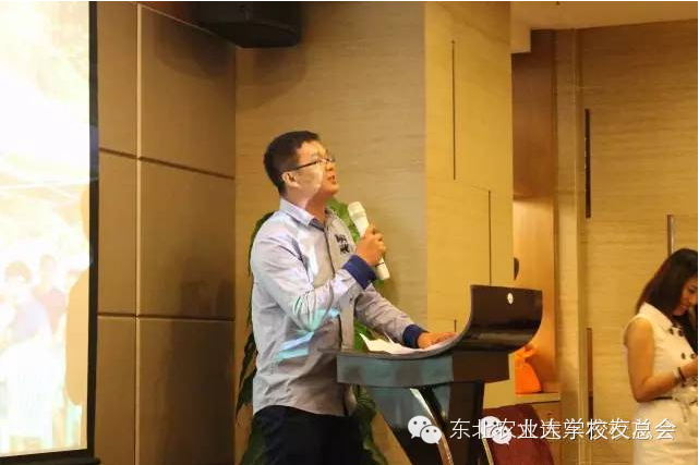 大连校友会副会长、哈高联(哈尔滨高校联合会)秘书长96兽医王刚为迎新晚宴致辞。