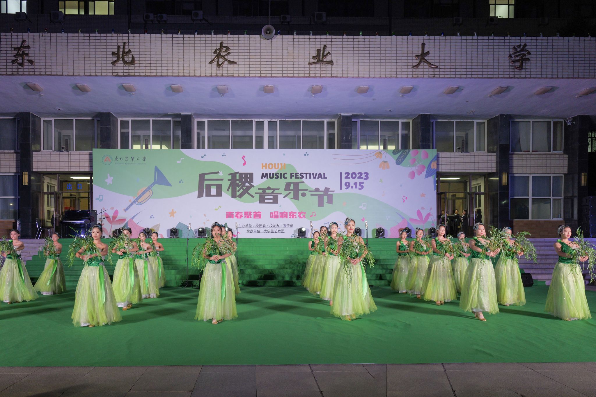 为深入贯彻落实美育工作,大力发展素质教育,以美育人、以美化人、以美培元,加强涉农高校耕读教育,提升东农学子的艺术审美和人文素养,9月15日,我校在主楼广场举办“青春聚首 唱响东农”后稷音乐节活动。本次活动由校团委、校友办、宣传部共同主办,大学生艺术团和多位受邀返校校友共同演出,通过“掌上东农”微信视频号、“艺术东农”抖音号、“东北农业大学校友会”微信视频号同步直播,线上平台观看的同学及东农校友达万余人。