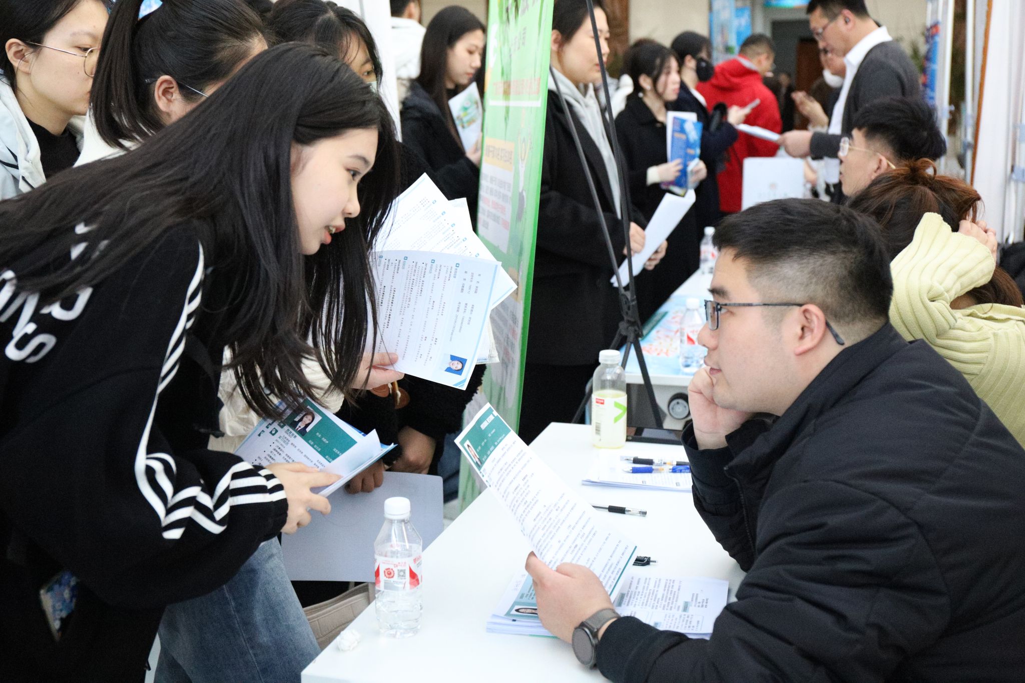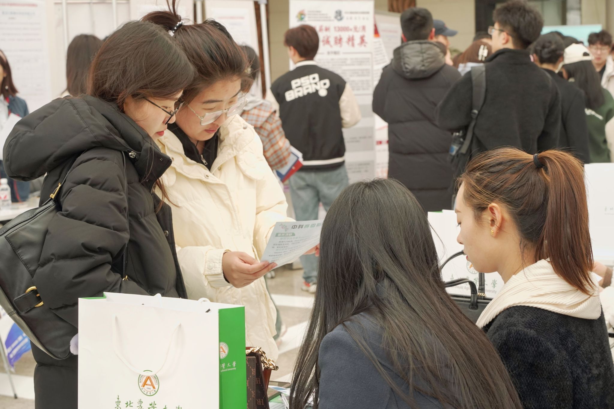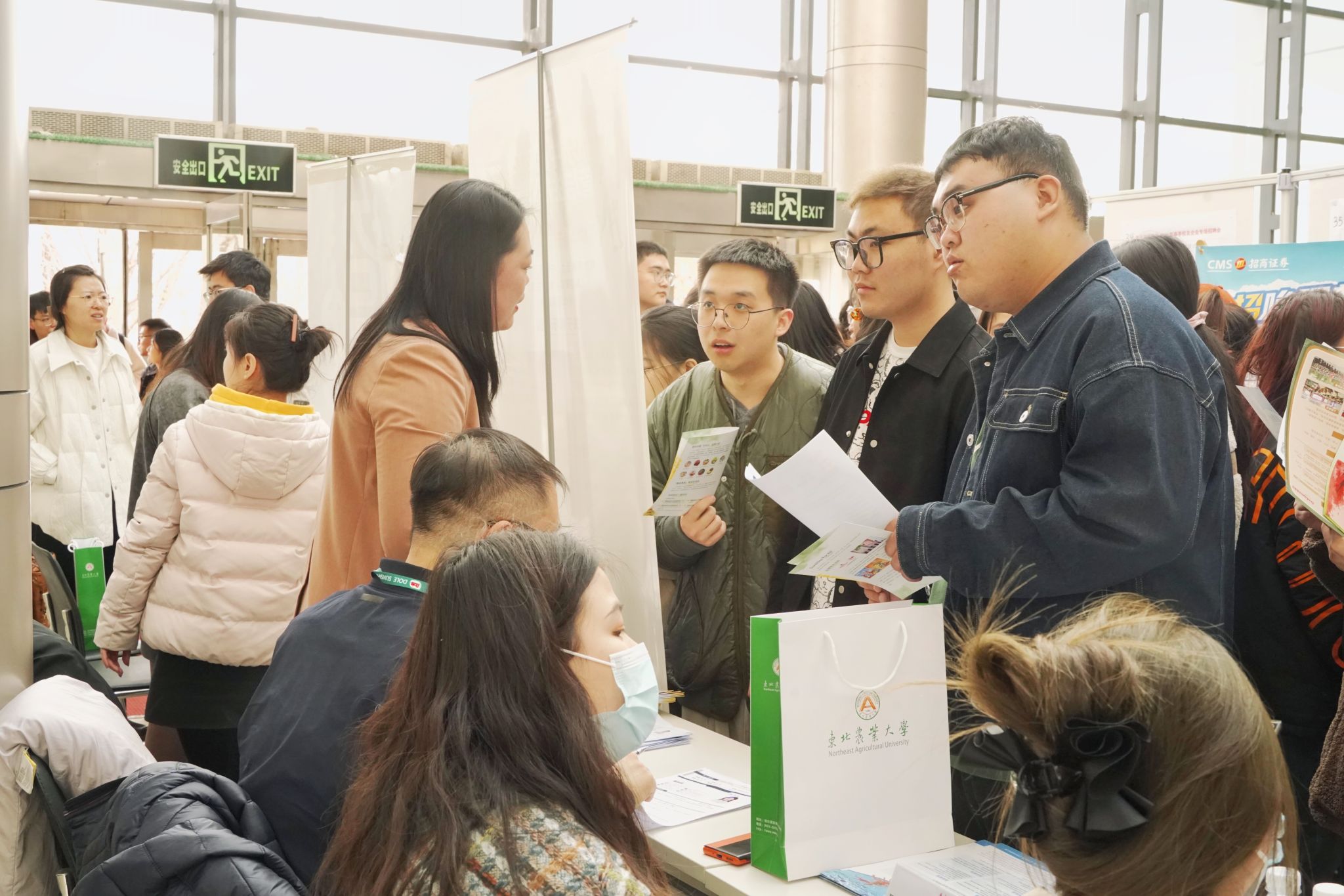 东北农业大学举办2024年春季校友企业招聘会暨涉农行业专场招聘会 编辑:王倪 | 发布时间:2024年03月20日 09:18 | 点击:[] 为持续做好学校2024届毕业生就业工作,落实共青团促进大学生就业行动,加强校友企业与学校的交流与合作,为毕业生与用人单位搭建供需对接平台,促进我校毕业生更充分、更高质量就业,3月15日,校友工作办公室、校团委与招生就业处联合举办2024年春季校友企业招聘会暨涉农行业专场招聘会。校党委副书记王泽方、校友工作办公室主任车可舒、校团委书记李卡、招生就业处处长宋跃芬、副处长吴立龙,部分学院党委书记、副书记、毕业班辅导员及700余名毕业生参会。 招聘会现场 王泽方了解招聘会组织及毕业生参会情况 本次招聘会共计50家重点用人单位参会,其中国有企业7家,校友企业30家,提供就业岗位1561个,线下收取简历1625份。会场设有就业数字“驾驶舱”展示屏,对参会单位整体情况、校友企业名单及学生参会情况进行实时展示。 就业数字“驾驶舱”展示图 招聘会现场 据悉,为做好我校2024届毕业生就业工作,持续为毕业生与用人单位之间搭建供需沟通桥梁,我校于3月15日-4月26日每周五下午举办“‘才’聚周五,‘职’等你来”系列专场招聘活动;3月29日,举办我校2024届毕业生春季大型供需见面洽谈会;3月30日,由省委组织部、省教育厅、省人力资源和社会保障厅联合开展的“市委书记进校园”引才活动在我校举行。 来源:东北农业大学官网 【关闭】 上一条:我校校友潘忠礼、陈历俊、万贤生成功当选国际食品科学院院士 下一条:青岛校友会理事会2024年第一次会议顺利召开