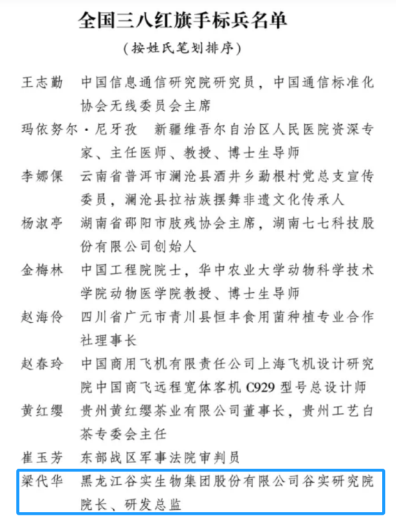 其中我校2001届动物营养与饲料加工专业校友、谷实生物集团谷实研究院院长、研发总监梁代华获得“全国三八红旗手标兵”称号,我校2005届蔬菜学专业校友、天津市农业科学院黄瓜研究所研究员李愚鹤获得“全国三八红旗手”称号。