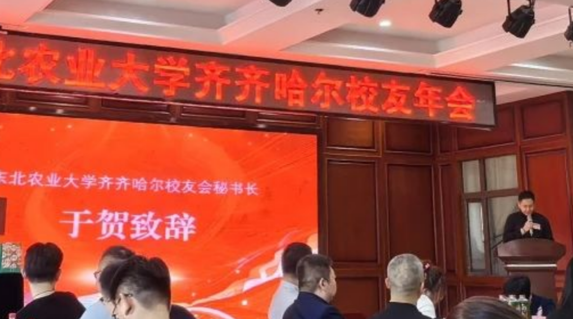 近期,东北农业大学齐齐哈尔校友会2025年会在北纬47温泉家园隆重举行。东北农业大学校友工作办公室主任宋跃芬受邀作为学校校友会代表出席会议,黑龙江交通职业技术学院党委副书记高汉峰,齐齐哈尔市委党校原书记程少坤,哈尔滨工程大学齐齐哈尔校友会会长金鸿雁及哈尔滨校友会秘书长李睿,东北农业大学哈尔滨校友会秘书长王德平及学院校友会代表,吉林校友会常务副会长张景亮及秘书长尹云飞,海南校友会副会长代庆等嘉宾出席会议。来自各县区、各届各院系的校友怀着对母校的眷恋和对校友情谊的珍视温馨相聚,共计100人参会。各兄弟校友会通过网络形式致电祝贺。