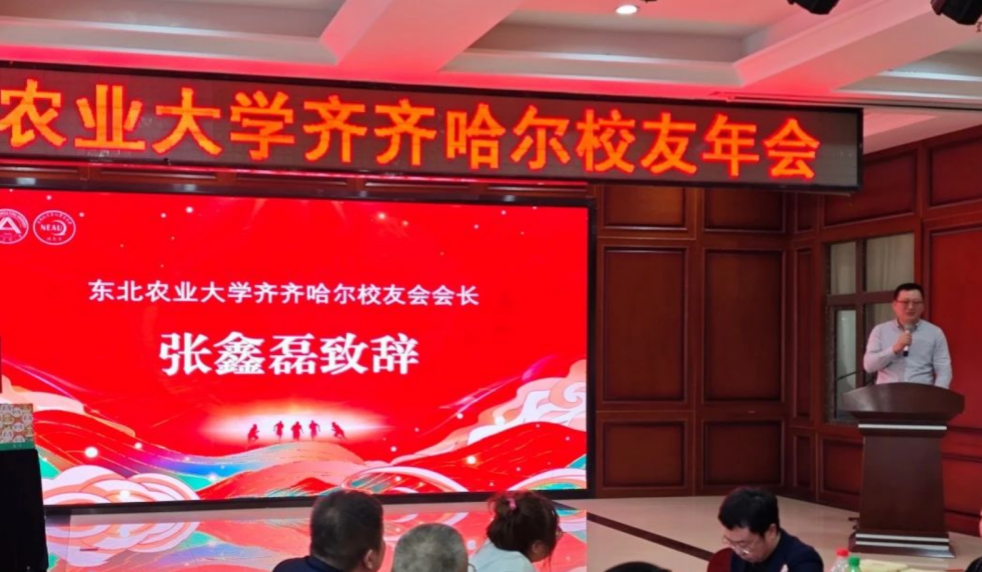 齐齐哈尔校友会会长张鑫磊发表致辞,他讲述了齐齐哈尔校友会一路以来的发展历程,肯定了校友会骨干力量的作为与担当,表达了对母校、校友们的深情厚谊以及对校友会未来发展的深切期望。他表示作为致力于公益事业的校友组织,校友会的重要意义在于“传承”,并鼓励校友们继续秉持东农精神,在各自行业领域耐心耕耘、发光发热,持续为校友会和母校的发展贡献自身力量。
